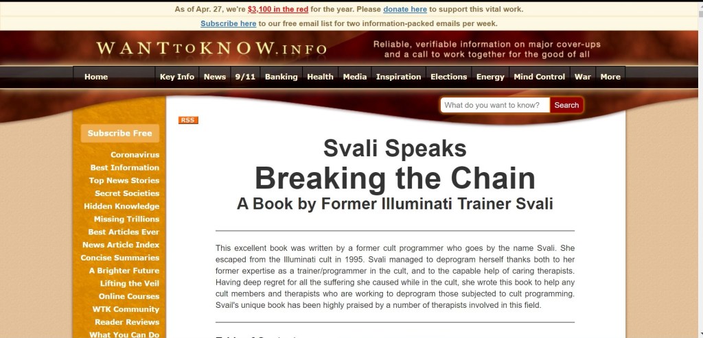 Svali Speaks – Breaking the Chain – a book by former Illuminati trainer Svali