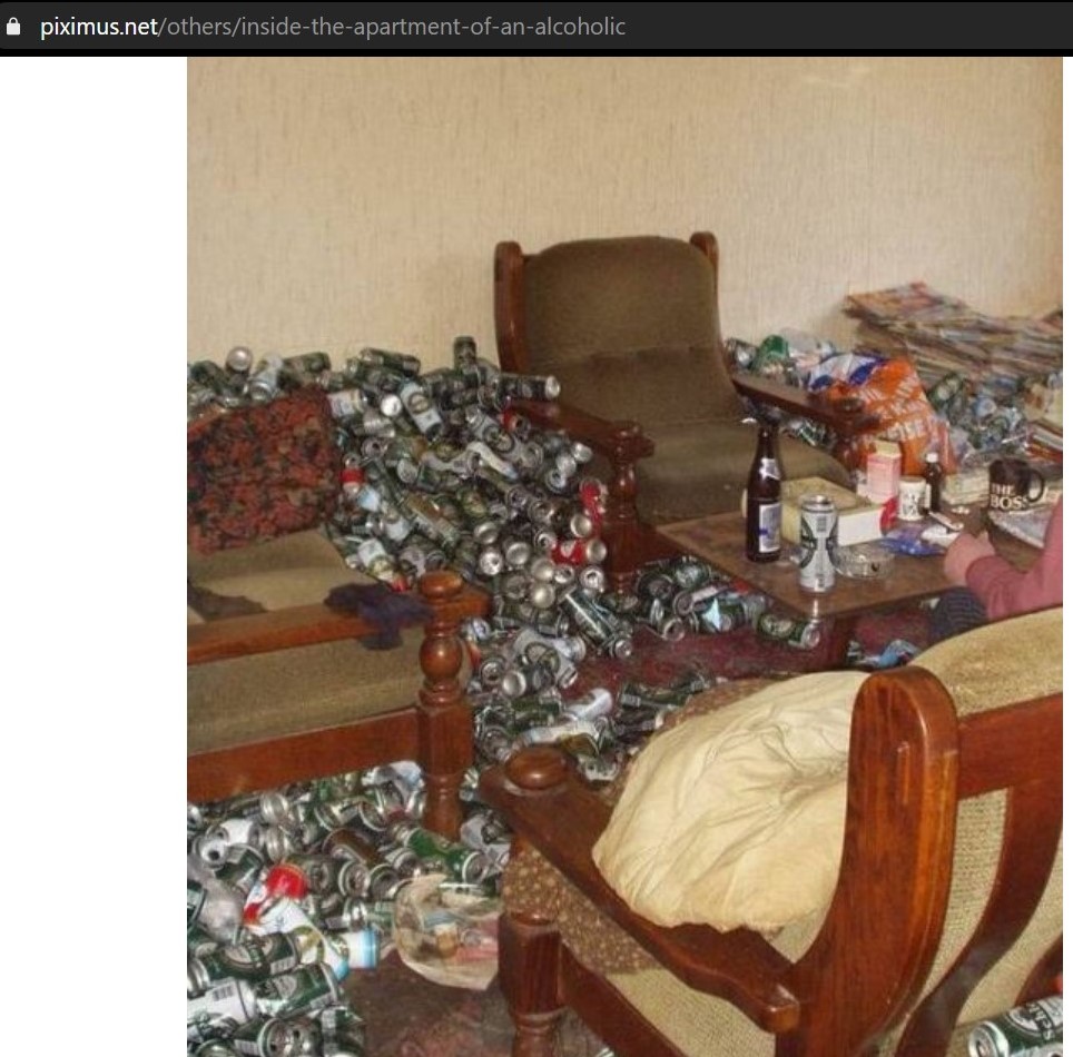A floor, covered with empty beer cans and wine bottles. I’m trying to walk, but soon something cold enters my left shoe. I feel how my sock gets wet – probably a few drops of remaining fluid from a can of beer that is emptied over my foot. I keep on pressing forward, shoving and kicking away all the obvious and hidden obstacles on the floor, but when I almost trip over a wine bottle I decide to stop walking and watch the scene in front of me from where I’m standing. The smell in this room is truly horrendous. It’s irritating my nose, but I’m reluctant to rub it, because my hands have touched several door handles in this apartment already and since it’s not only the scent of scale beer that reaches my smelling organ… Who knows what this man’s hands have been touching?